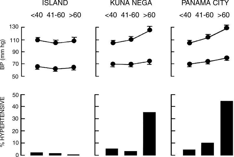 For the Kuna who have migrated to urban areas on the mainland of Panama, the prevalence of hypertension is higher (10.7%) and reaches 45% among those over age 60. So, it seems more environmental than genetic. Maybe stress? Further studies found no strong correlation between urban Kuna’s stress level and their blood pressure, as compared to their islander counterparts. Urban pollution? Very possibly a contributing factor, but an unlikely one to entirely explain such a dramatic rise in blood pressure and general disease. What else could it be?